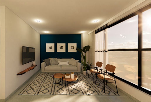 Se plantearon 10 tipologías de apartamentos por piso, un primer piso de locales comerciales y Lobby, y una terraza que permite disfrutar de los días soleados característicos del lugar.