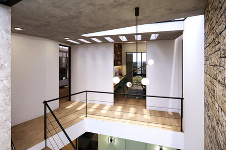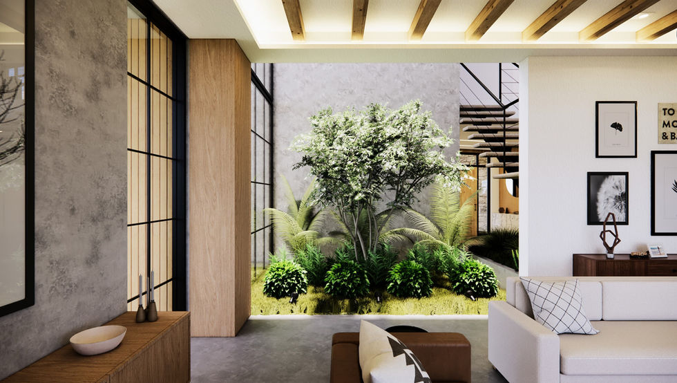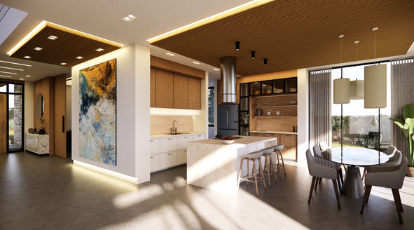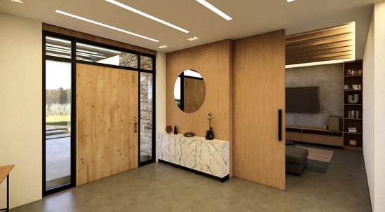Los requerimientos de nuestros clientes fueron muy claros, ellos querían una casa compacta, con vista 360° y con una materialidad especifica que incorporamos en fachadas y en interiores.
